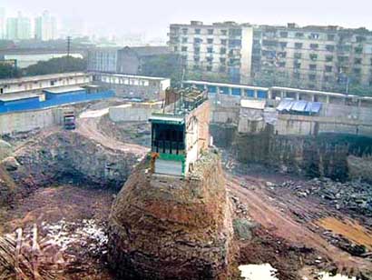 重慶Zhengsheng不動産会社は、この地域を開発しマンションやショッピングモールを含んだブロードウェイスクウェアを作ろうとしていた。しかし、住人は1,300,000ポンド(現在価格およそ3億)の保証金を払わない限り立ち退かないと主張していた。